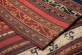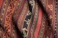 The simplest jajim shows very plain stripes, some wider than others, in plain colours. The weaver has chosen these colours by putting his warps on the loom. The less numerous wefts are invisible.