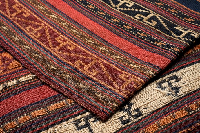 Jajims were traditionally woven on horizontal looms, nowadays they are also made on vertical looms.