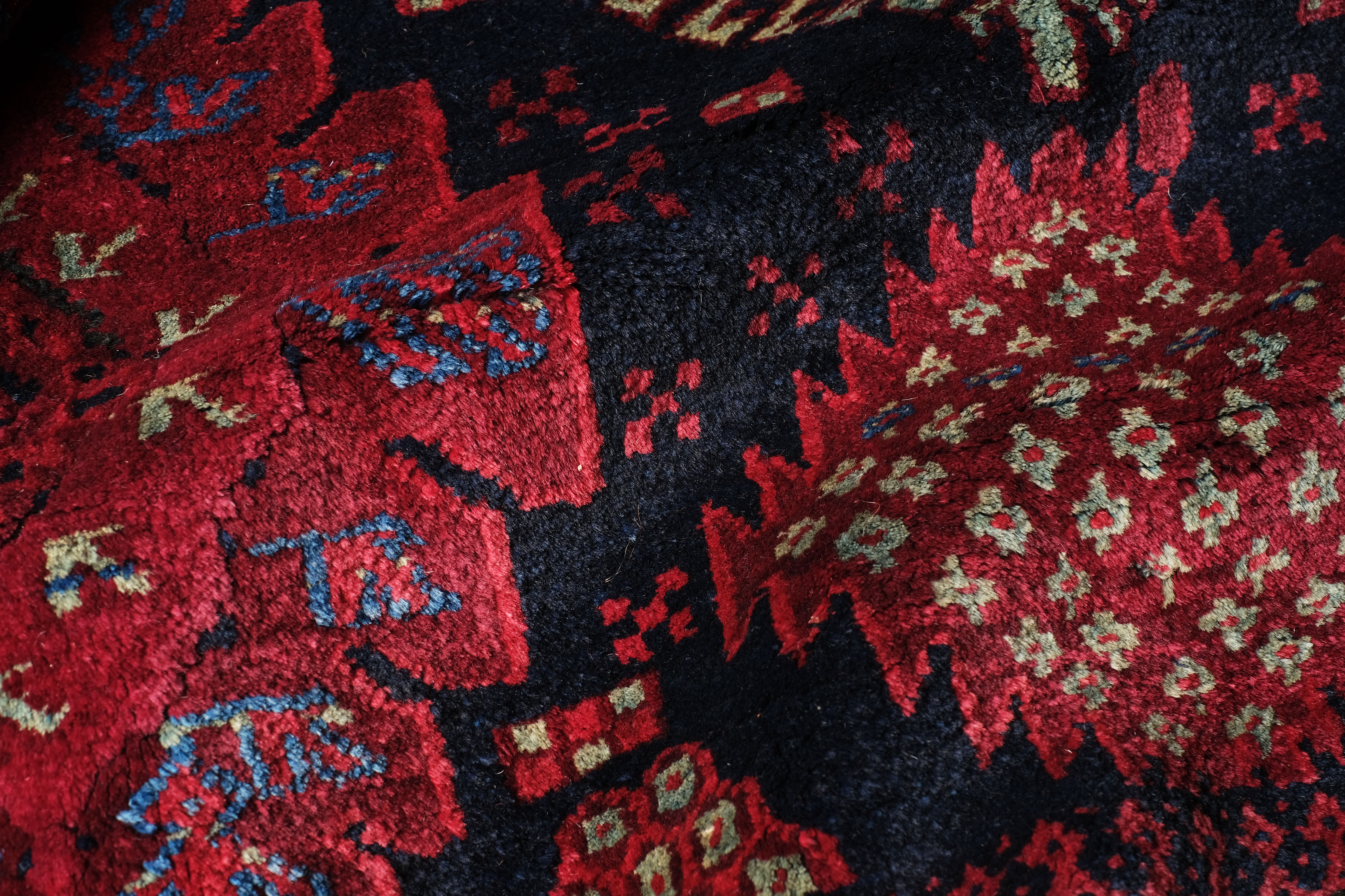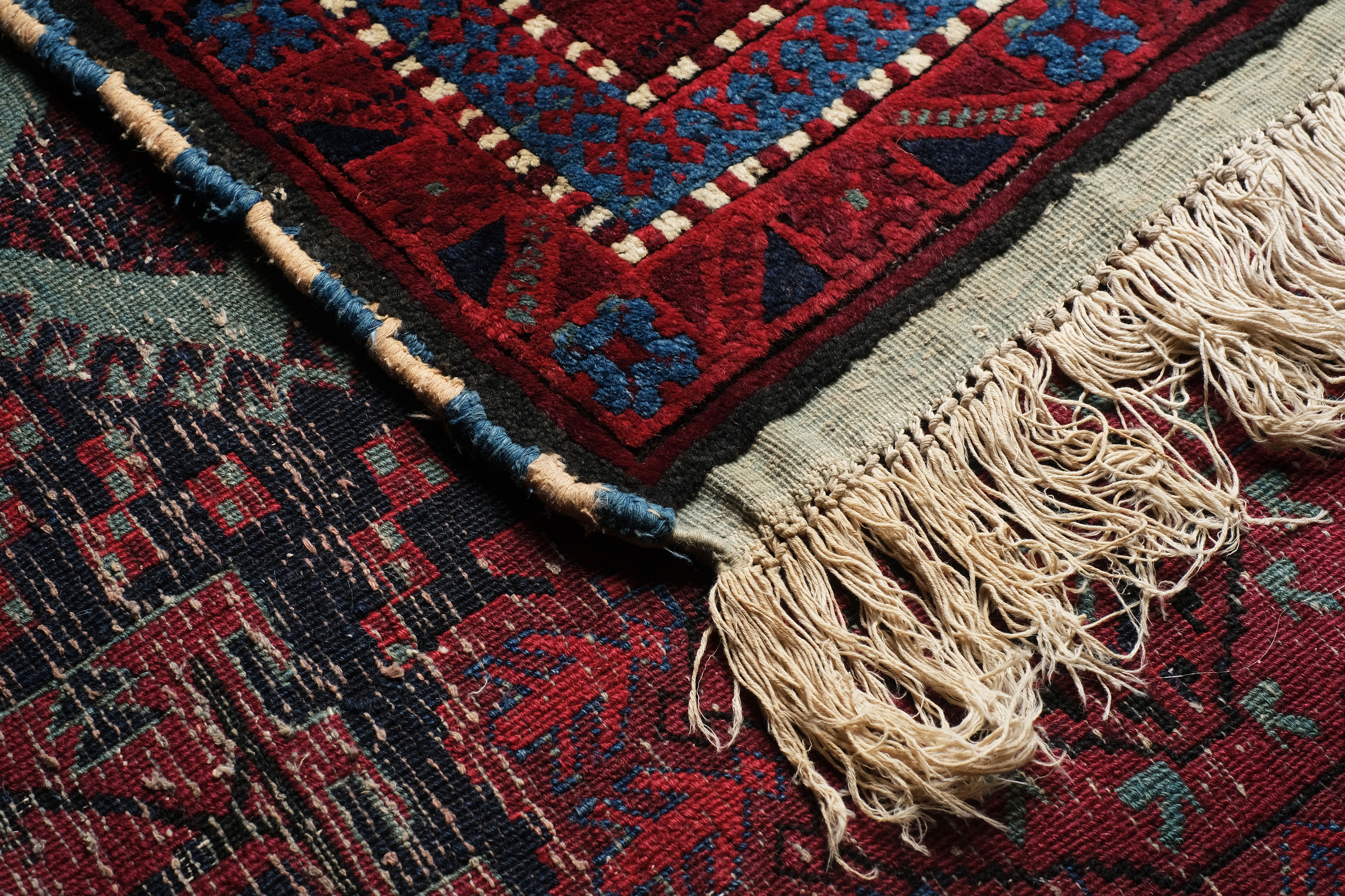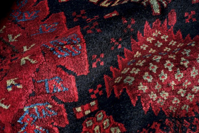Dit tapijt is bijzonder interessant omdat het als één van de weinige stukken uit deze familie, een motief vertoont dat ontleend is aan de tapijten die in de Adraskandvallei in Afghanistan geknoopt werden door de Timuri of Baludj-stammen.