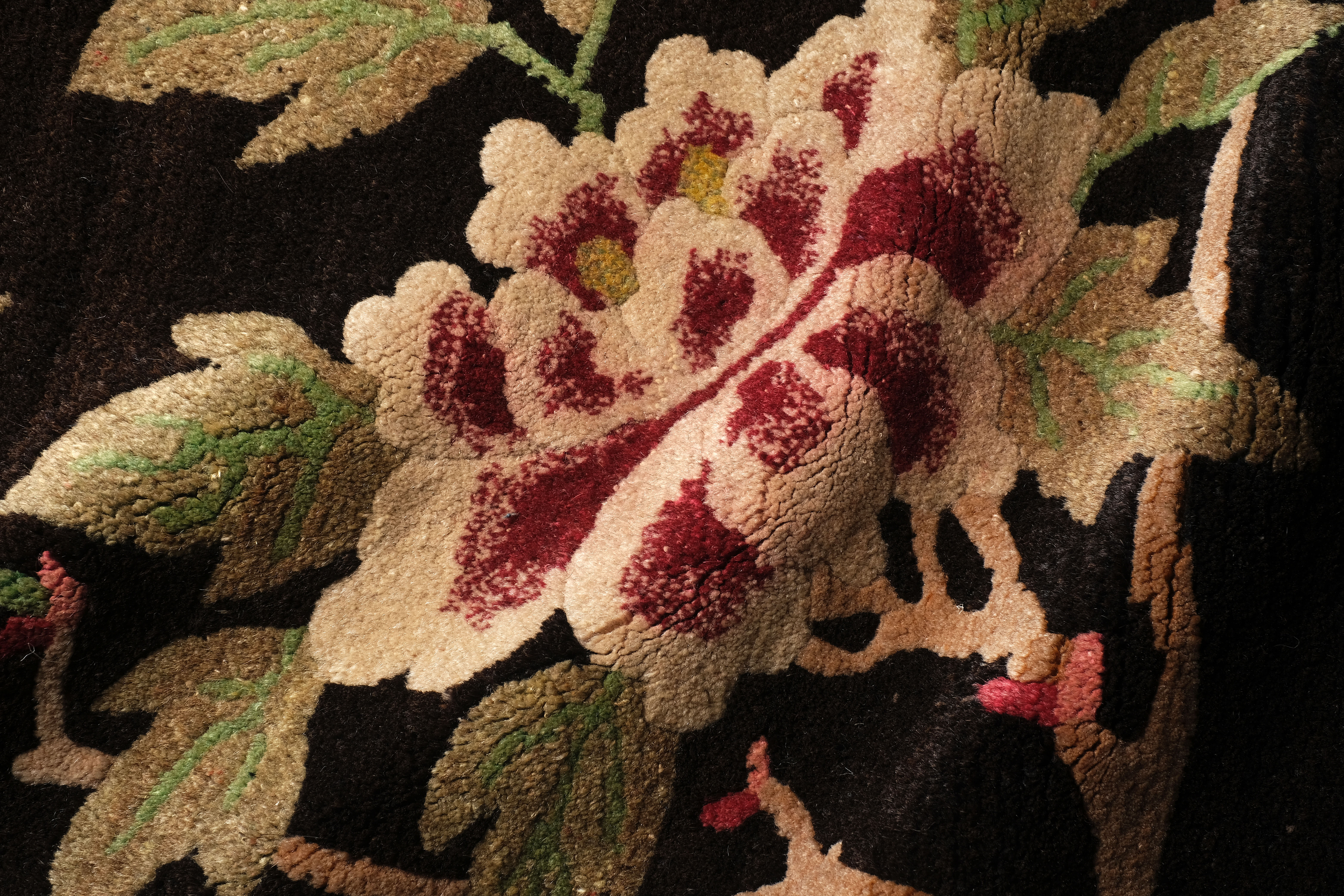 De tapijtknoopkunst, en daarmee bedoelen we niet huisvlijt maar het vervaardigen van grote tapijten is in China eerder laat ontstaan in vergelijking met b.v. Perzië, d.w.z. vermoedelijk op het einde van de 17de eeuw of het begin van de 18de eeuw. De stijl van deze stukken was ook diegene die men ziet op het aardewerk van die tijd. De datering en identificatie per streek is voor Chinese tapijten zeer moeilijk. Ondanks de grote uitgestrektheid van het grondgebied, is er een opmerkelijke uniformiteit van techniek, manier van knopen, gebruik van verfstoffen, enz. De Chinese wereld van de kunst geeft eerder een beeld van eenheid.