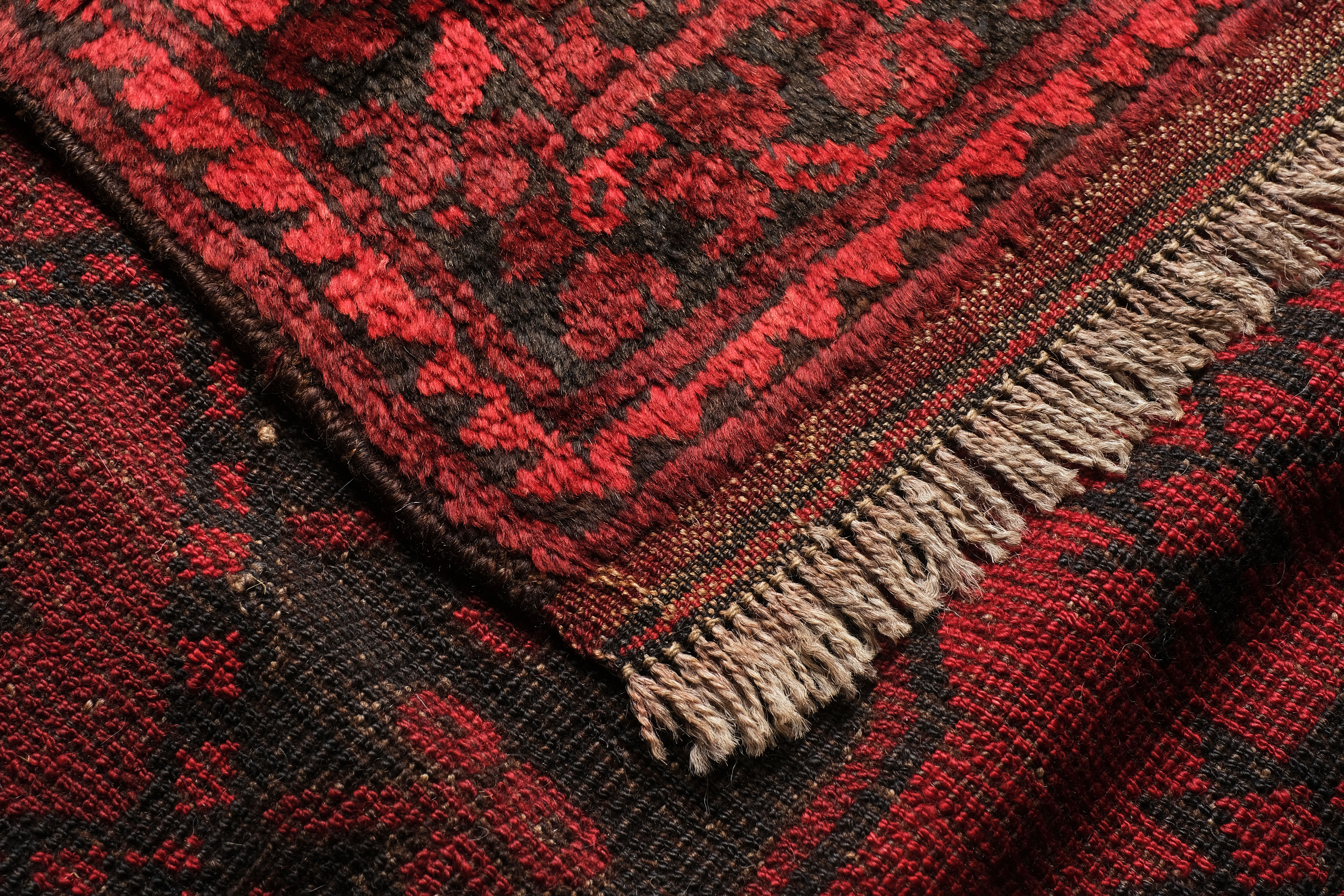 De tapijten uit Afghanistan waren oorspronkelijk overwegend variaties op eenzelfde thema van tal van rode schakeringen met voornamelijk zwarte motieven. Deze kleuren (in zo ver natuurlijke kleurstoffen werden gebruikt) veranderden stilaan in roestbruin en warme terracotta. De motieven waren zeer sober en toch aantrekkelijk voor wie een oog had voor tapijtknoopkunst.